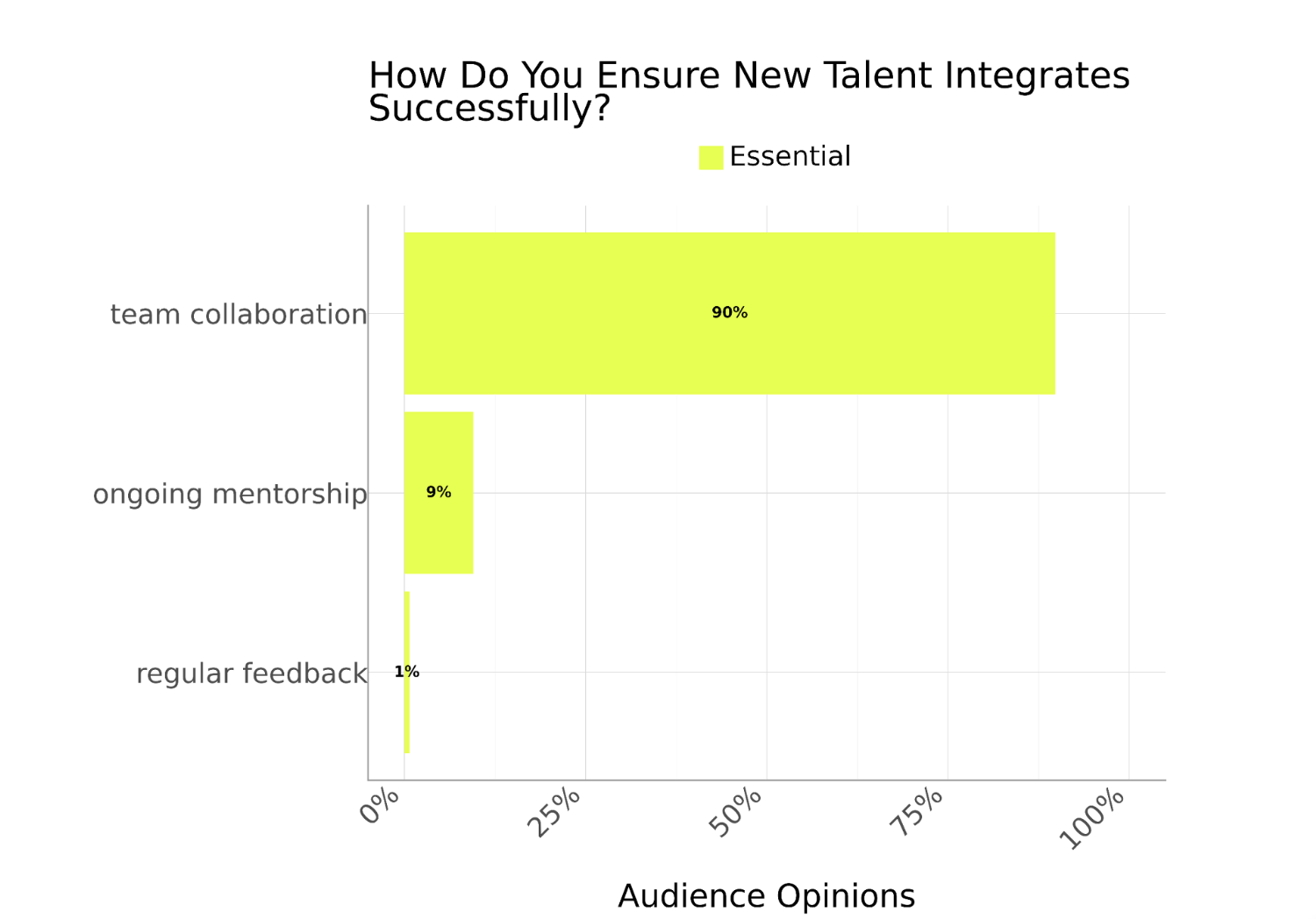 Although ongoing mentorship is also incredibly valuable in the workplace, the fact that only 9% say that it’s essential to integration highlights just how crucial collaboration is. Additionally, just 1% say that regular feedback is essential, indicating that the majority of their priorities lie in fostering teamwork and open collaboration over more traditional, top-down management approaches.