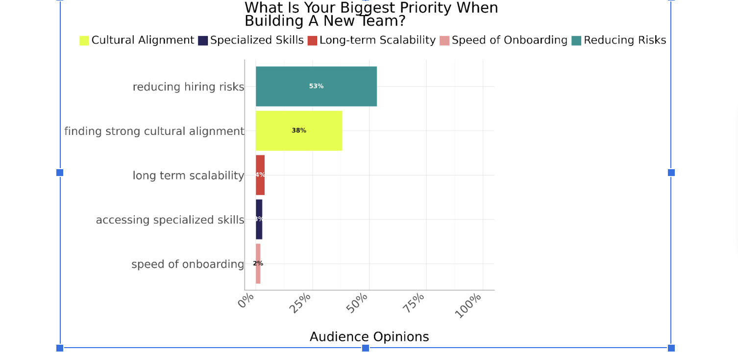 Reducing hiring risks is the biggest priority for 53% of tech leaders in startups when building a new team