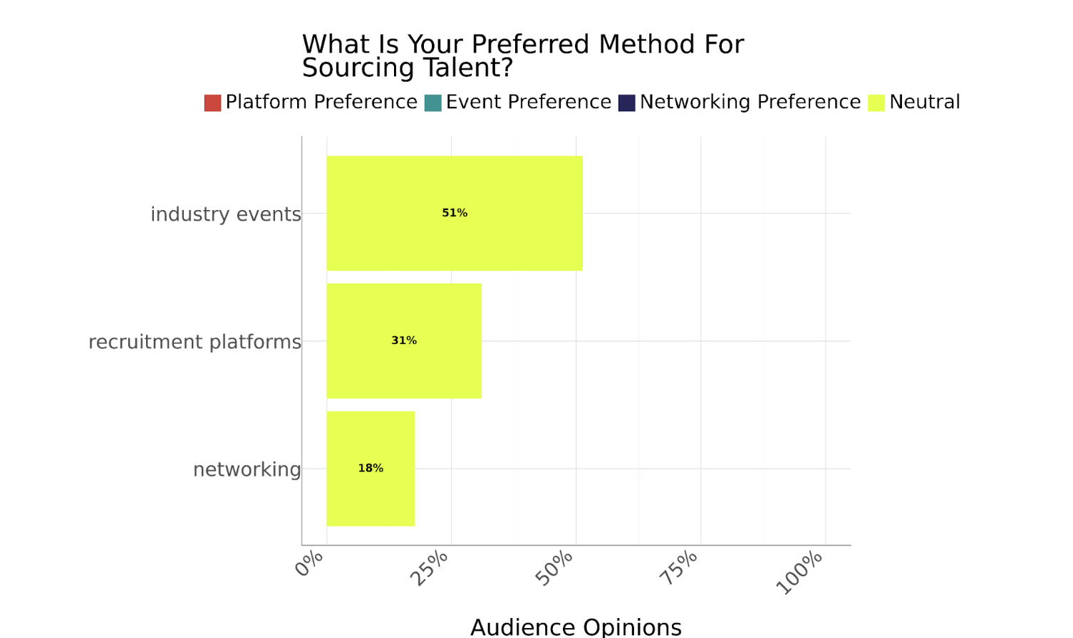 Sourcing talent is undeniably one of the most crucial elements of running any startup, so the fact that our audience is neutral regarding their preferred method for sourcing new hires stands out. Opinions are split three ways, with 51% expressing neutral opinions about industry events, 31% about recruitment platforms, and 18% networking.